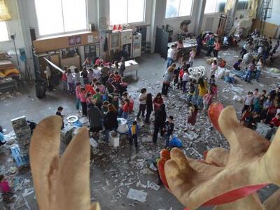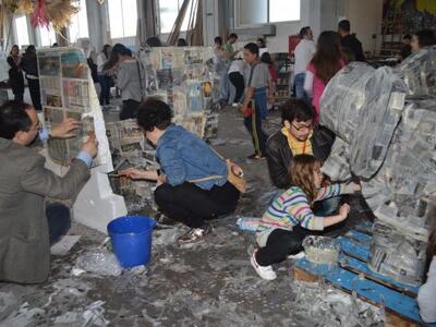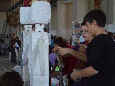Έτσι, μετά τον πρώτο κύκλο, που αφορούσε διήμερο βιωματικό Σεμινάριο Εκπαιδευτικών (workshop) τον περασμένο Φεβρουάριο στην Αγορά Αργύρη, το πρωί του Σαββάτου 13 Απριλίου, πραγματοποιήθηκε στο Καρναβαλικό Εργαστήρι και Καλλιτεχνικών Κατασκευών, εργαστήριο σε εικαστική κατασκευή, με τη συμμετοχή 400 μαθητών από σχολεία του Δήμου Πατρέων. Μαζί με τους μαθητές συμμετείχαν οι εθελοντές του Δήμου, η γνωστή ως ομάδα «Έψιλον» και μέλη της «Art in Progress».