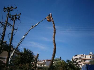 Στη συνέχεια όμως, όταν φύγαμε από το σημείο, τα μηχανήματα πήραν μπρος για να αρχίσει η διαδικασία της κατακρεούργησης τους. Παρά το γεγονός ότι επικοινωνήσαμε με το γραφείο του Μητροπολίτη για να του ζητήσουμε να παρέμβει, δεν κατέστη δυνατόν να αποσοβήσουμε την «εκτέλεση» των δένδρων. Το αποτέλεσμα το βλέπετε στις φωτογραφίες με τα θλιβερά απομεινάρια των πεύκων που δεν πρόκειται φυσικά να «ξαναπετάξουν».