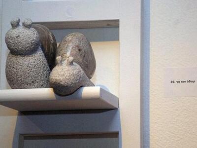 Η έκθεση περιλαμβάνει 64 έργα. Η πρώτη του έκθεση υπό τον τίτλο «Γενέθλια θάλασσα» περιελάμβανε χίλιες σκαλισμένες πέτρες μικρών διαστάσεων. Με τα «όντα» περνά σε μεγαλύτερα μεγέθη και αλλάζει τις κλίμακες και τις φόρμες, συνεχίζοντας να χρησιμοποιεί σαν πρώτη ύλη πέτρες της θάλασσας, ανακαλύπτοντας και προβάλλοντας τα «όντα» που κρύβουν μέσα τους.