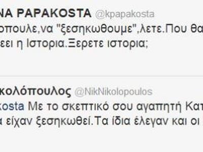 Αφορμή στάθηκε ένα tweet της Κατερίνα Παπακώστα, η οποία έγραψε: "Κ. Νικολόπουλε, να "ξεσηκωθούμε", λέτε. Που θα οδηγηθούμε, όμως μετά, το λέει η Ιστορία. Ξέρετε ιστορία;".