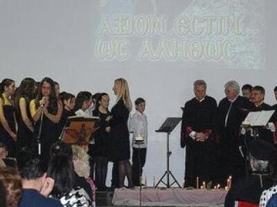 Μια μοναδική βραδιά ήταν αυτή που απέλαυσαν όσοι βρέθηκαν χθες το βράδυ στην αίθουσα εκδηλώσεων του Πρότυπου Πειραματικού Γυμνασίου Πανεπιστημίου Πατρών. Μια βραδιά όπου η ποίηση συναντούσε τη μουσική, η μουσική τη νιότη, η νιότη την άνοιξη και η άνοιξη το Θείο Πάθος. Ο Βυζαντινός Χορός της Πολυφωνικής Χορωδίας Πατρών και τη χορωδία του Πρότυπου Πειραματικού Γυμνασίου Πανεπιστημίου Πατρών, μας χάρισαν μια συγκινητική παράσταση, μέσα από μια πρωτότυπη ποιητική και μουσική συνάντηση παρουσιάζοντας χαρακτηριστικά αποσπάσματα από το νομπελικό έργο «Άξιον εστι» του Οδυσσέα Ελύτη, καθώς και διάσημους μελοποιημένους στίχους του από τον μεγάλο Έλληνα μουσικοσυνθέτη Μίκη Θεοδωράκη, συνδυάζοντάς τους με ιερά κείμενα της ορθόδοξης παράδοσης, τα οποία αποτέλεσαν τη βάση τόσο της ποιητικής, όσο και της μουσικής έμπνευσης του «Άξιον εστί».
