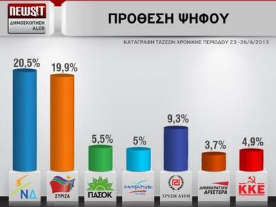 Οι Ανεξάρτητοι Έλληνες ακολουθούν μια πτωτική πορεία και η Χρυσή Αυγή φαίνεται να έχει πιάσει "ταβάνι".