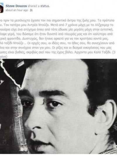 Όσο για το συγκινητικό μήνυμα του γιου του Στιβ Ντούζου στο tweeter είναι το ακόλουθο, όπως αναδημοσιεύτηκε στο zougla.gr.