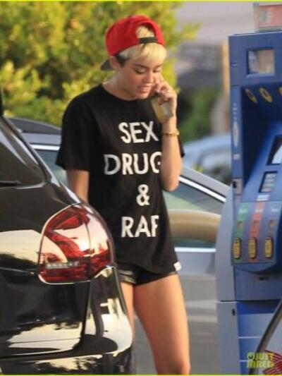 Πιο πρόσφατο παράδειγμα η νεαρή τραγουδίστρια Miley Cyrus, την οποία ο φωτογραφικός φακός “συνέλαβε” να βάζει βενζίνη στο αυτοκίνητό της, φορώντας ένα μπλουζάκι με το… γεμάτο νόημα μήνυμα “Sex, drugs and rap”.