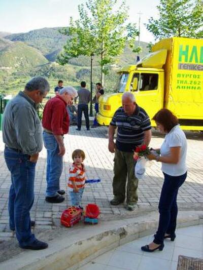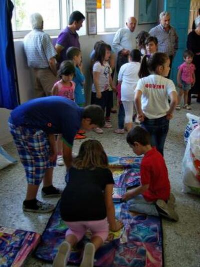 Στο παλιό σχολείο του χωριού, που λειτουργεί και ως μουσείο, τοποθετήθηκαν τα παιχνίδια στην Αρτέμιδα. Τα μέλη του Ομίλου εκτός από τα παιχνίδια χάρισαν στα παιδιά και πασχαλινές λαμπάδες που κατασκεύασαν μέλη του συλλόγου αλλά και άλλα παιδιά από το 1ο Σύστημα προσκόπων Ηλιούπολης.