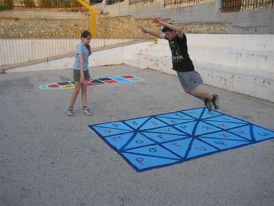 Η συνεργασία εξελίχθηκε άψογα και το αποτέλεσμα δικαίωσε τη δουλειά κάτω από τον καυτό ήλιο. Ένα τεράστιο πολύχρωμο φιδάκι, τρίλιζες και κουτσό, παιχνίδια γραμμάτων και αριθμών έτοιμα να υποδεχθούν τα παιδιά αμέσως μετά τις διακοπές για να γεμίσουν ευχάριστα και ψυχαγωγικά τις ώρες του διαλείμματος από τα μαθήματα.