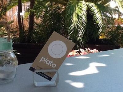 Αυτές τις ημέρες λόγω του άστατου καιρού το piato λειτουργεί μέσα - έξω δίνοντας τη δυνατότητα γευστικών απολαύσεων κάτω από τις υπέροχες μουριές του κήπου αλλά και στο εσωτερικό με τις μεγάλες ανοιχτές τζαμαρίες.