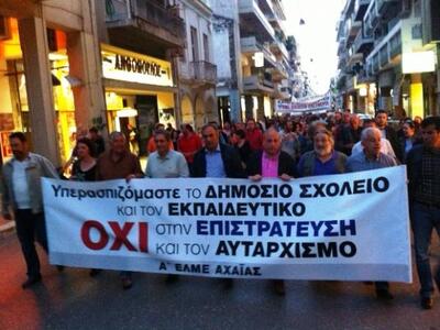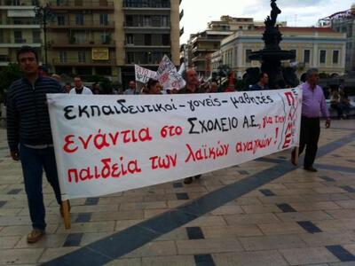 Ο αγώνας αυτός δεν είναι αγώνας μόνο των εκπαιδευτικών. Είναι αγώνας όλου του λαού για να μη διαλυθεί το δημόσιο σχολείο από τη βάρβαρη πολιτική των μνημονίων.