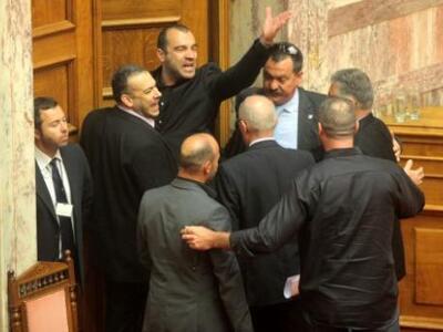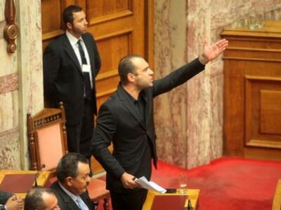 «Φύγετε για να μην σας διώξουμε εμείς», δήλωσε ο αντιπρόεδρος στη Βουλής. Ο βουλευτής της Χρυσής Αυγής συνέχισε στον ίδιο τόνο και στη συνέχει ο κ. Δραγασάκης ανέγνωσε τις διατάξεις του Κανονισμού για την αποβολή του και κάλεσε στην αίθουσα τον φρούραρχο.