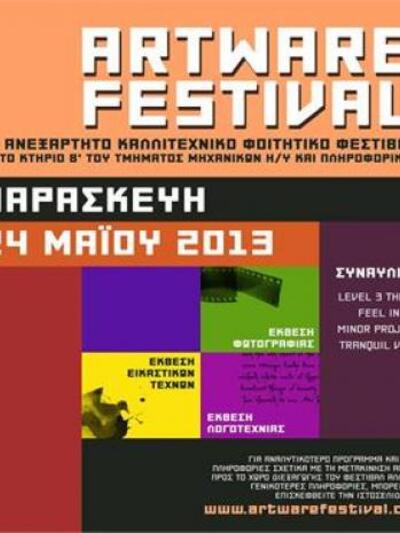 Το Ανεξάρτητο, Φοιτητικό, Καλλιτεχνικό φεστιβάλ Artware Festival των φοιτητών Μηχανικών Η/Υ του Πανεπιστημίου Πατρών διοργανώνεται και φέτος και θα πραγματοποιηθεί σήμερα Παρασκευή 24 Μαΐου 2013 μετά τις 9 το βράδυ στο κτήριο Β' του Πανεπιστημίου Πατρών, ακριβώς πίσω από την πρυτανεία.