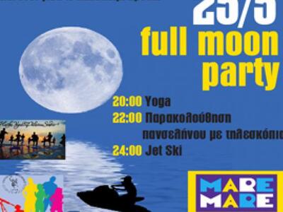 Αυτό το Σάββατο 25 Μαΐου από τις 8 το βράδυ στο Mare Mare στην Ηρώων Πολυτεχνείου έχει Full Moon Party. Η αρχή γίνεται στις 8 με Yoga ενώ στις 10 το βράδυ το κοινό μπορεί να παρατηρήσει την Πανσέληνο με τα τηλεσκόπια του Ωρίωνα συνοδεία χαρτών της Σελήνης.