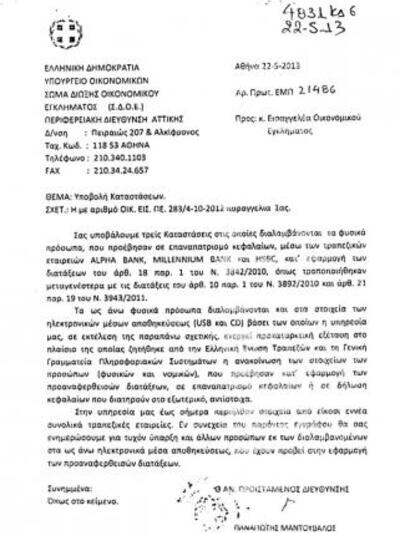 Για τον λόγο αυτό τα στοιχεία που ζητήθηκαν αφορούν την περίοδο από Οκτώβριο έως και Δεκέμβριο του 2010 (σ.σ. η λίστα Λαγκάρντ έφτασε στην Ελλάδα στις 29.9.2010)