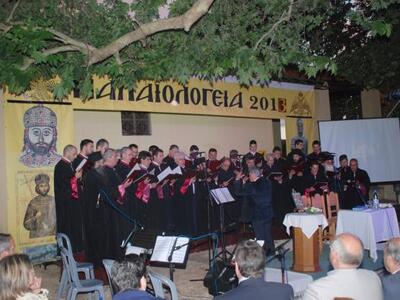 Το πρόγραμμα ξεκίνησε, ενώπιον του πολυπληθούς ακροατηρίου, με Ύμνους της Αλώσεως, από τον 30μελή ΒΥΖΑΝΤΙΝΟ ΧΟΡΟ της ΠΟΛΥΦΩΝΙΚΗΣ, υπό τη διεύθυνση του χοράρχη, Γιάννη Κόττορου, Διευθυντού του Εκκλησιαστικού Λυκείου Πατρών, καθηγητού της Βυζαντινής Μουσικής, Πρωτοψάλτου και Προέδρου του Δ.Σ. της ΠΟΛΥΦΩΝΙΚΗΣ.