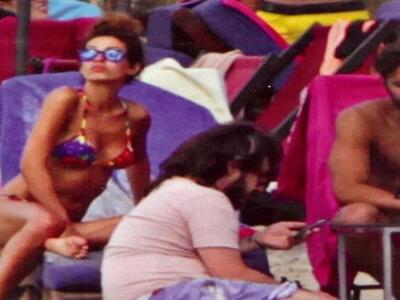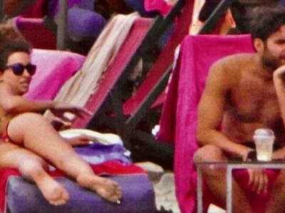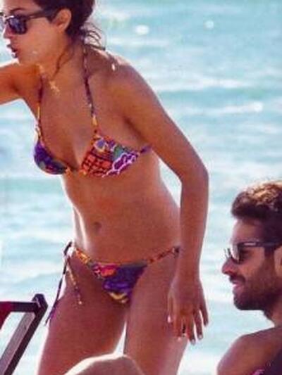 Ο φωτογραφικός φακός του περιοδικού Hello εντόπισε το ερωτευμένο ζευγάρι στην παραλία, και αυτό που έκανε εντύπωση σε όλους, ήταν το γυμνασμένο κορμί της τραγουδίστριας, η οποία επέλεξε να φορέσει ένα μικροσκοπικό μπικίνι και έγινε το πρώτο θέμα στους λουόμενους και όχι άδικα.