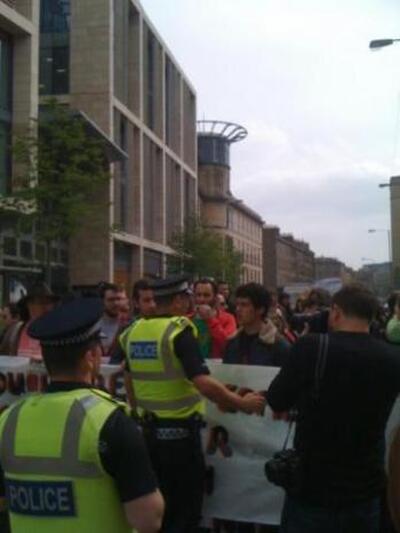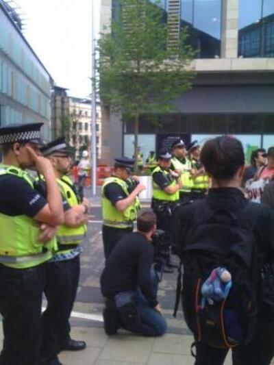 Διαδηλωτές αποφασισμένοι να μην επιτρέψουν στον Γιώργο Παπανδρέου να μιλήσει σε συνέδριο του TEDGlobal στο Εδιμβούργο έχουν συγκεντρωθεί ήδη με πανό και πλακάτ έξω από το κτίριο της εκδήλωσης, ενώ η αστυνομία προσπαθεί να τους κρατήσει σε απόσταση.