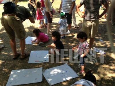 Παιδικές φωνές και χαμόγελα γέμισε το πρωί το προαύλιο της ΕΡΤ. Ζωγραφική,κουκλοθέατρο, παιχνίδια, ζογκλέρ και ξυλοπόδαροι είναι μερικές απο τις εκπλήξεις που έχουν ετοιμάσει οι εργαζόμενοι στο ραδιομέγαρο για μικρούς και μεγάλους.