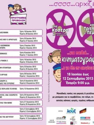Το πρόγραμμα«Κινηματογράφος για παιδιά…και για όλη την οικογένεια» πάει θερινό σινεμά για έβδομη χρονιά φέτος, ανοίγοντας παράθυρο στην φαντασία των παιδιών και στις αναμνήσεις των μεγάλων.