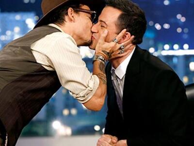 Καλεσμένος στην εκπομπή του του Jimmy Kimmel βρέθηκε ο γνωστός ηθοποιός, Johnny Depp και μάλλον η χαρά του ήταν τόση ώστε να αρπάξει και να φιλήσει τον παρουσιαστή αρκετές φορές στο στόμα.