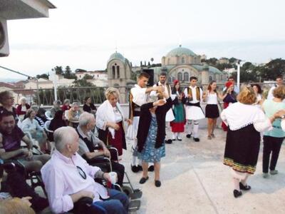 Μέλη και φίλοι του Ιδρύματος κατέκλυσαν τον χώρο της ταράτσας, απήλαυσαν το ηλιοβασίλεμα, δροσίστηκαν με αναψυκτικά χορηγία της ΛΟΥΞ ΜΑΡΛΑΦΕΚΑΣ Α.Ε και στο τέλος της εκδήλωσης χόρεψαν μαζί με περιθαλπόμενους και εργαζόμενους.