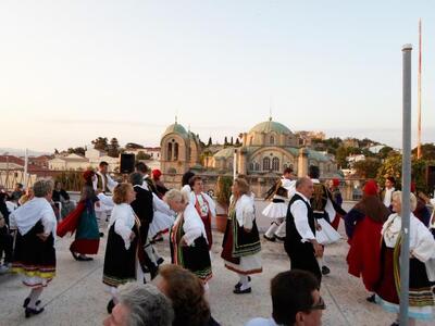 Τα χορευτικά συγκροτήματα του Παγκαλαβρυτινού Συλλόγου Πατρών έδωσαν ξεχωριστό τόνο στην βραδιά με το κέφι τους, τις παραδοσιακές στολές και τις φιγούρες τους.