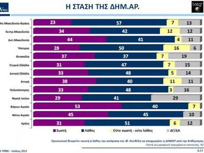 84% οι δυσαρεστημένοι από τη σύνθεση της νέας κυβέρνησης στη Δυτική Ελλάδα ενώ 80% είναι αυτοί που βλέπουν ΕΡΤ μετά το κλείσιμο και 48% βλέπουν αρνητικά την κίνηση της ΔΗΜΑΡ.