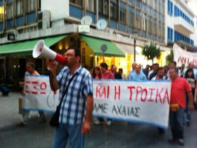 Ακολούθησε πορεία στους κεντρικούς δρόμους της Πάτρας με μπροστάρηδες τους εργαζόμενους της ΕΡΤ και της ΕΡΑ Πάτρας, ενώ με δικό του μπλοκ κατέβηκε το ΠΑΜΕ.