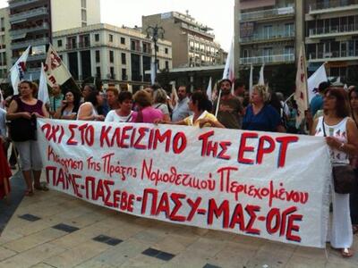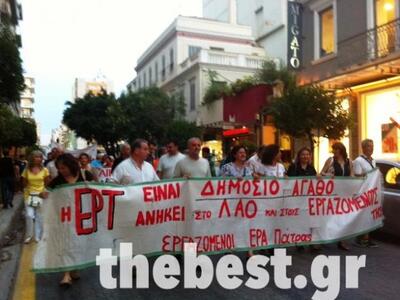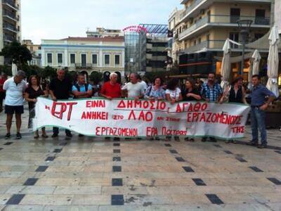 Την απόφασή τους να κρατήσουν ανοικτή την ΕΡΤ και να παλέψουν για να μη χαθεί ούτε μία θέση εργασίας διατράνωσαν απόψε στην πλατεία Γεωργίου της Πάτρας οι εργαζόμενοι της ΕΡΤ Πάτρας. Στον αγώνα τους βρέθηκαν συμπαραστάτες σωματεία και φορείς της περιοχής που συμμετείχαν στο Παμπατραϊκό συλλαλητήριο.