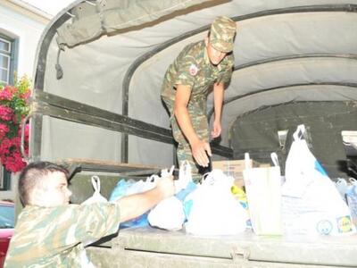 Με φορτηγό του στρατού μεταφέρθηκαν τα τρόφιμα που συγκεντρώθηκαν στην Στέγη Αγάπης, ώστε να βοηθηθεί στο έργο της η τοπική Εκκλησία και να στηρίξει δημότες που απευθύνονται σε αυτήν για την καθημερινή τους σίτιση.