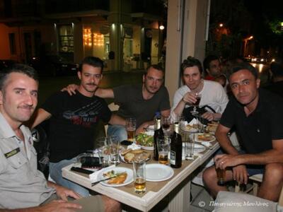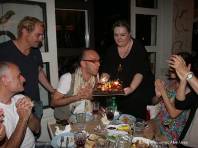 Οι συντελεστές της παράστασης κατηφόρισαν στο γνωστό μεζεδοπωλείο για λίγη χαλάρωση και καλό φαγητό. Είχαν ετοιμάσει μάλιστα και μία τούρτα έκπληξη για τον συνάδελφό τους ηθοποιό Θωμά Γκαγκά, ο οποίος γιόρτασε χθες βράδυ τα γενέθλιά του.
