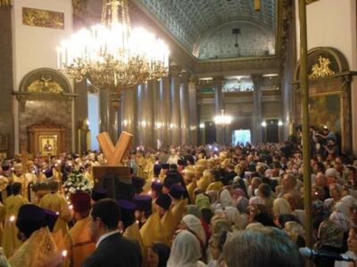 Κατά χιλιάδες συρρέουν οι πιστοί στον Καθεδρικό Ναό της Παναγίας του Καζάν στην Αγία Πετρούπολη, για να προσκυνήσουν τον σταυρό του Αγίου Αποστόλου Ανδρέα που έφθασε χθες στην Ρωσία.