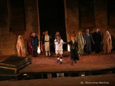 Με επιτυχία δόθηκε χθες Πέμπτη 11 Ιουλίου το βράδυ στο Αρχαίο Ρωμαικό Ωδείο της Πάτρας η 1η παράσταση της «Ελένης» του Ευριπίδη σε σκηνοθεσία του Βασίλη Νικολαίδη, στο πλαίσιο του Διεθνούς Φεστιβάλ του Πολιτιστικού Οργανισμού του Δήμου.