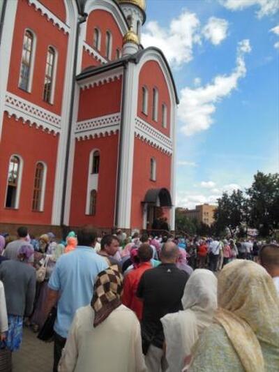 Στον Ναό του Αγίου Γεωργίου, στην πόλη Οντίσοβα στα περίχωρα της Μόσχας ο χρόνος της παραμονής του Σταυρού ολοκληρώθηκε, αλλά ο κόσμος που περίμενε έξω από τον Ναό να προσκυνήσει ήταν ακόμη χιλιάδες.
