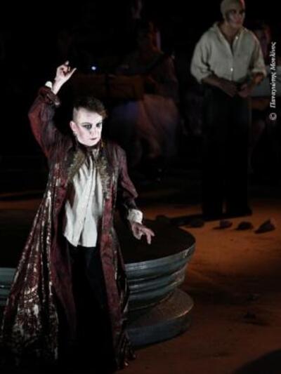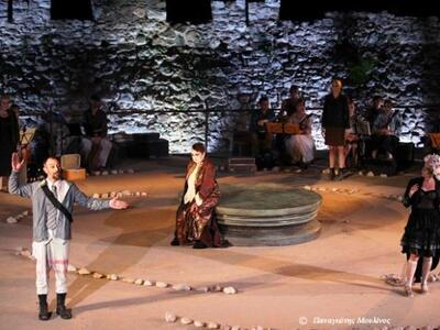 Στις 20:45 η ομάδα του Λυρικού Θεάτρου του ΔΗ.ΠΕ.ΘΕ.Πάτρας παρουσίασε ένα σύντομο ρεσιτάλ στο Επταπύργιο του Κάστρου βασισμένο στην τραγωδία και στις 22:00 ξεκίνησε η παράσταση στο καινούργιο θέατρο 300 θέσεων, σε μία εξαιρετική τοποθεσία με στόχο την επόμενη χρονιά να γίνει ένα μόνιμο Φεστιβάλ στο χώρο, με έργα Σαίξπηρ και αρχαίου Δράματος.
