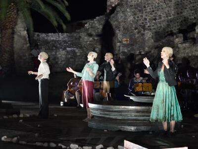 Πάντως ιδιαίτερα ταιριαστό είναι και το φυσικό σκηνικό του προμαχώνα του Κάστρου που έχει αξιοποιήσει ιδανικά ο κ. Αμπαζής.