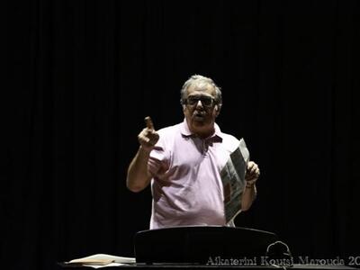 Σε ένα κατάμεστο θέατρο παρουσία της προέδρου Νανάς Πατρώνη, των μελών του Δ.Σ. Έλλης Αργυριάδου και Αλέξη Σκαρμέα , των συγγραφέων Ρέας Γαλανάκη, Κώστα Λογαρά , Διονύση Καρατζά, Γιάννη Παππά , του Κ. Διευθυντή του θεάτρου Θοδωρή Αμπαζή, δημοσιογράφων και φίλων του θεάτρου, πραγματοποιήθηκε η εκδήλωση με θέμα Το πένθος της μεταμφίεσης στον Εκπαιδευτικό Χώρο Μπάρι.