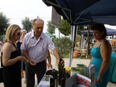 Στο χώρο της πλατείας επίσης, φιλοξενήθηκαν εκθεσιακά περίπτερα τοπικών επιχειρήσεων, όπως και μια μικρή αντιπροσωπευτική έκθεση αντιγράφων αρχαιοελληνικών αντικειμένων σχετικά με το λάδι και την ελιά στην αρχαιότητα (παναθηναϊκοί αμφορείς, αρύβαλλοι, λήκυθοι, λυχνάρια και άλλα).