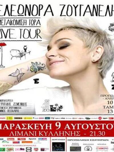 Στο Λιμάνι της Κυλλήνης θα πραγματοποιήσει μία live εμφάνιση η γνωστή τραγουδίστρια Ελεωνόρα Ζουγανέλη αυτή την Παρασκευή 9 Αυγούστου 2013, στις 21.30.
