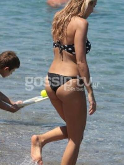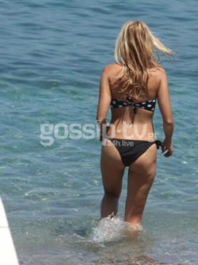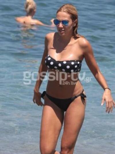 Η παρουσιάστρια και δίχως ρετούς, όπως θα παρατηρήσετε, διαθέτει κορμί «λαμπάδα»! Φόρεσε το πουά μπικίνι της, πλατσούρισε στα καταγάλανα νερά και απόλαυσε τον ήλιο!