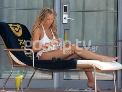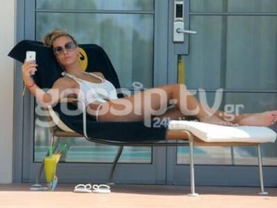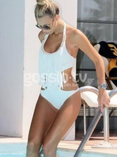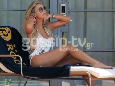 Ο φωτογραφικός μας φακός απαθανάτισε την πρώνη «Star Hellas» κατά την διάρκεια που απολάμβανε το μπάνιο της και την ηλιοθεραπεία της στην πισίνα του ξενοδοχείου όπου μένει με τον αγαπημένο της Τάσο Μπερδέση.