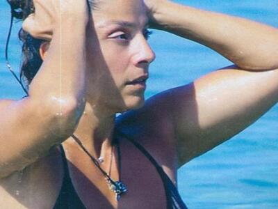 Χωρίς ίχνος μακιγιάζ και φορώντας ένα μαύρο μπικίνι που αποκάλυπτε την τέλεια σιλουέτα της, η Πόπη Τσαπανίδου συγκέντρωσε το θαυμασμό όσων την είδαν από κοντά.