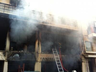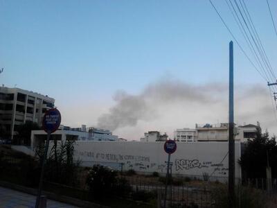 Οι καπνοί που αναδύονται είναι πυκνοί και ορατοί από άλλα σημεία της πόλης (φωτ.).