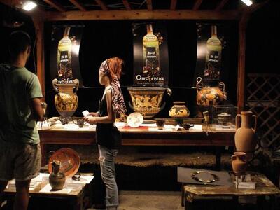 Παράλληλα, στο χώρο της πλατείας φιλοξενήθηκε αντιπροσωπευτική έκθεση με τίτλο «Χαίρε και πίει ευ» με αντίγραφα αρχαίων ελληνικών αγγείων του κρασιού (κρατήρες, σκύφοι, κάνθαροι, κύλικες, οξυπύθμενοι αμφορείς κ.α.) με την επιμέλεια του Πολιτιστικού Συλλόγου “Τέχνη και Φύση”.