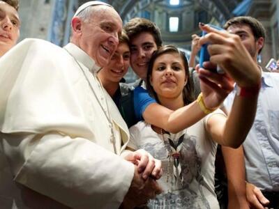 Ξεσήκωσε τα social media ο Πάπας με τη "selfie" φωτογραφία! Χαμός και στον ιταλικό τύπο από τη φωτογραφία του Πάπα Φραγκίσκου, με πέντε νέους, η οποία τραβήχτηκε με Smartphone, στο εσωτερικό της βασιλικής εκκλησίας του Αγίου Πέτρου.