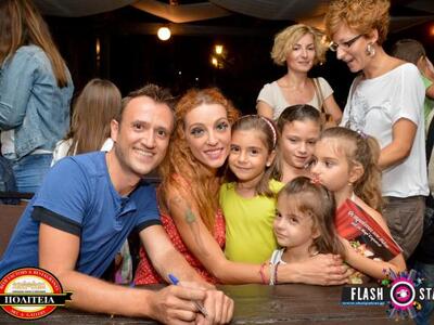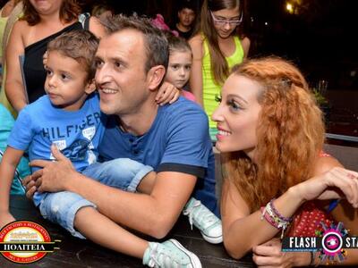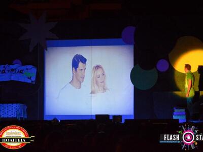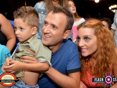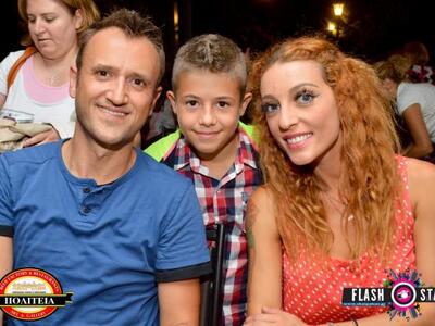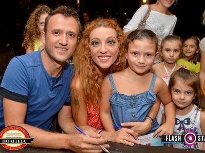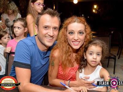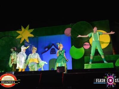 Οι πρωταγωνιστές Αργύρης Αγγέλου και Βανέσα Αδαμοπούλου φωτογραφήθηκαν στο τέλος της παράστασης με όλα τα παιδιά