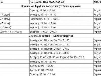Τα νέα τμήματα, που θα δημιουργηθούν στο Χορευτικό Τμήμα για το έτος 2013-2014, οι μέρες και ώρες λειτουργίας τους καθώς και η έναρξη των μαθημάτων τους έχουν ως εξής: