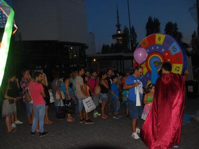 Το «Πλήρωμα 94» είχε προετοιμάσει και διεξήγαγε ένα διαδραστικό παιχνίδι (τύπου καρναβαλικής Φάσης Πλατείας) με τίτλο «Ο τροχός της τύχης». Το παιχνίδι στήθηκε στον πεζόδρομο της Αριστοτέλους το μεσημέρι του Σαββάτου (13.00 – 15.00) και έξω ακριβώς από το περίπτερο του Πατρινού Καρναβαλιού στην Έκθεση, την Κυριακή (13.00-15.00 και 19.00-21.00). Απευθυνόταν στους περαστικούς οι οποίοι γύριζαν τον τροχό και μέσα από μια απλή διαδικασία κέρδιζαν αντιπροσωπευτικά πατρινά δώρα (τεντούρα, ξερολούκουμα, καρναβαικές σοκολάτες, αναμνηστικά από το Πατρινό Καρναβάλι, αφίσες παλαιότερων ετών, cd με υλικό από την Αχαΐα κ.α.) και έντυπη ενημέρωση για το Πατρινό Καρναβάλι του 2014. Μικροί μεγάλοι ανταποκρίθηκαν και χάρηκαν τη διαδικασία.