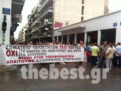 Η διαθεσιμότητα, οι μετατάξεις, η αβάσταχτη φορολογία και τα λουκέτα έβγαλαν στους δρόμους της Πάτρας, καθηγητές μέσης εκπαίδευσης, επαγγελματοβιοτέχνες (οδηγοί ταξί, αρτοποιοί κλπ.) αλλά και διοικητικούς υπαλλήλους του Πανεπιστημίου Πατρών.