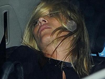 Με θολά μάτια, εξουθενωμένη, και προφανώς μεθυσμένη έπεσε στο πίσω κάθισμα ενός ταξί αφού προηγουμένως είχε παρευρεθεί στα εγκαίνια του νέου Longchamp καταστήματος στη Regent Street και αργότερα στο εντυπωσιακό πάρτι του περιοδικού W στο ξενοδοχείο London Edition το σούπερ μόντελ Κέητ Μος.