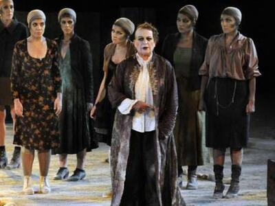 Σε αυτή τη σύγχρονη πρόταση του Θοδωρή Αμπαζή αξιοποιείται η μουσικότητα του λόγου και η δομή της τραγωδίας με τη σύμπραξη 32 μουσικών και 15 ηθοποιών.