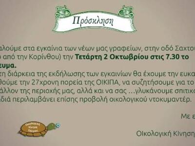 Αύριο το απόγευμα εγκαινιάζει τα νέα της γραφεία στην Αχαϊκή Πρωτεύουσα η Οικολογική Κίνηση Πάτρας.